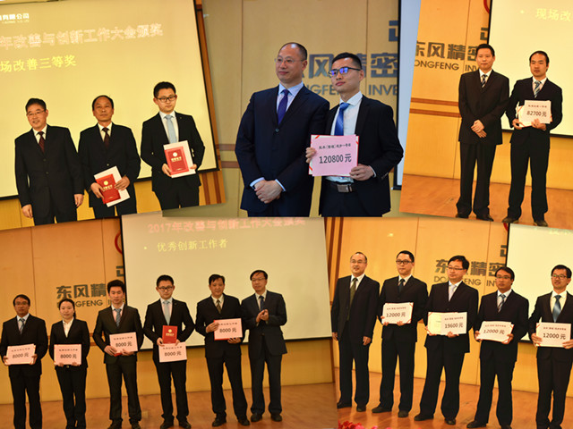 會(huì)上,副總經(jīng)理盧定全作《東風(fēng)精鑄2016年度科技工作報(bào)告》,總經(jīng)理助理鄭加勇作《東風(fēng)精鑄管理改善與創(chuàng)新工作報(bào)告》。隨后公司對(duì)2016年度優(yōu)秀創(chuàng)新改善成果、優(yōu)秀創(chuàng)新工作者、“精鑄工匠”以及優(yōu)秀創(chuàng)新人才進(jìn)行表彰。